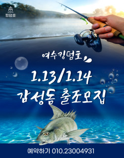 #긴급출조모집 #주말자리있습니다#감생이출조합니다 #감성돔출조 #소수인원도갑니다 #1호2호선상맛집#생활낚시전문 #단체&출조점환영♧ 이번주 주말 자리나왔습니다!!#매일출항합니다. #이번주자리있습니다. #주중주말자리있습니다.♣1.13일 토 / 1.14일 일 자리여유있습니다 .준비물 : 꼭 개인기포기,바칸,수심체크봉돌25~30호 챙겨주세요#매일나갑니다 #3인이상무조건입니다출조하실분 ☎️ 연락주세요 01023004931◆1월13일 토요일 감성돔 4자리여유◆1월14일 일요일 감성돔 8자리여유 #늦으심나중자리없어요!☎️예약문의010 2300 4931 === 여수 킹덤호 예약안내 ===예약문의 : 010-2300-4931오시는길 :여수시 어항단지로 42 선수품 매장 앞 바닷가 홈페이지 : http://kingdomho.sunsang24.com/